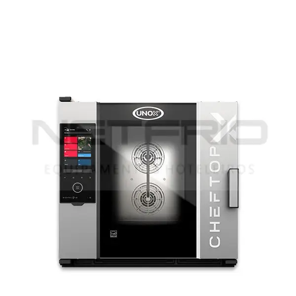 Forno combinado profissional de alto desempenho, equipado com um sistema operacional de última geração e tecnologia inteligente, projetado para gerenciar perfeitamente qualquer processo de cozimento de gastronomia, pastelaria e panificação. Possui certificação ENERGY STAR® para desempenho de baixo consumo e redução de resíduos, também graças ao seu sistema de lavagem automática com recirculação. O CHEFTOP-X™ possui uma câmara de cozimento moldada em aço 316L e um sistema integrado de filtragem de água RO.Care que elimina a necessidade de tratamentos externos. É equipado com um microfone integrado para permitir o controle de voz e a interação com os Chefs Corporativos da UNOX para receber assistência na cozinha diretamente pelo painel interativo. O sistema operacional avançado Digital.ID™ permite salvar todas as configurações favoritas na conta e transferi-las de um forno para outro em poucos segundos. Com o aplicativo Digital.ID™, é possível controlar o forno por meio de smartphones, bem como personalizar contas.