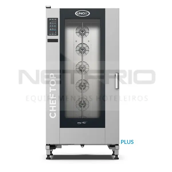 Forno combinado profissional inteligente capaz de gerenciar diversos processos de cocção (desidratação, cocção ao vapor, cocção em baixa temperatura, cocção sous vide; grelhar, dourar, fritar, regeneração e regeneração no prato) e processos de cocção de pães e confeitarias (fresca e congelada) graças as tecnologias Unox Intensive Cooking e Intelligent Performance, que garantem resultados perfeitos e sempre iguais. Gestão automática dos processos de cocção (CHEFUNOX) para cocções sempre perfeitas também na ausência de pessoal qualificado.
