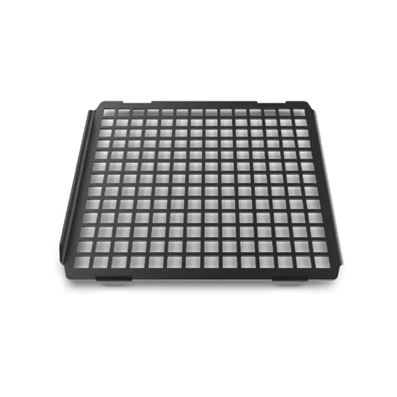 Tabuleiro em alumínio antiaderente para grelhar. Não é necessário o pré-aquecimento do tabuleiro.