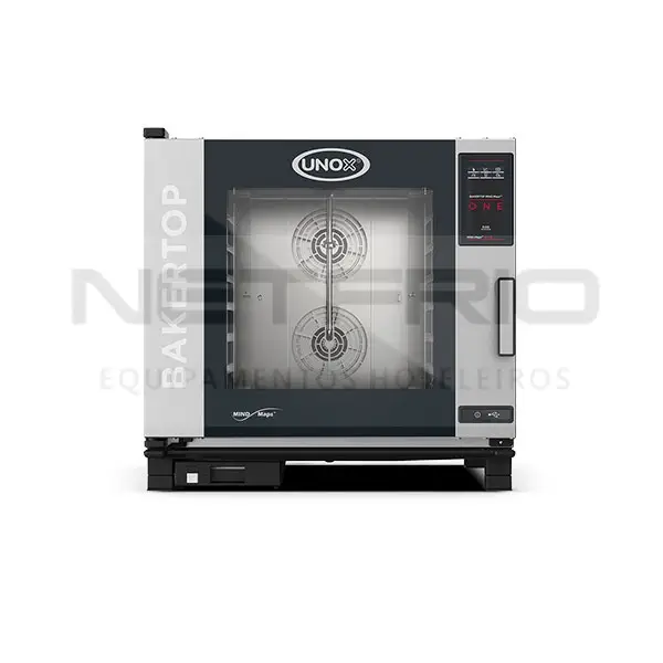 Forno combinado profissional capaz de gerenciar múltiplos processos de cocção para panificação e confeitaria (fresco ou congelado) e processos de cocção (desidratação, cocção ao vapor, cocção em baixa temperatura, cocção sous vides; dourar, grelhar, fritar, regeneração e renegeração no prato). Graças a tecnologia Unox Intensive Cooking que garante resultados perfeitos em cada carga.