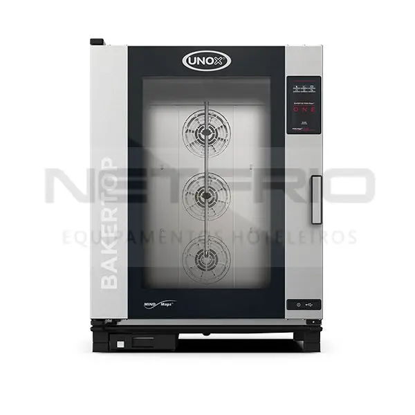 Forno combinado profissional capaz de gerenciar múltiplos processos de cocção para panificação e confeitaria (fresco ou congelado) e processos de cocção (desidratação, cocção ao vapor, cocção em baixa temperatura, cocção sous vides; dourar, grelhar, fritar, regeneração e renegeração no prato). Graças a tecnologia Unox Intensive Cooking que garante resultados perfeitos em cada carga.
