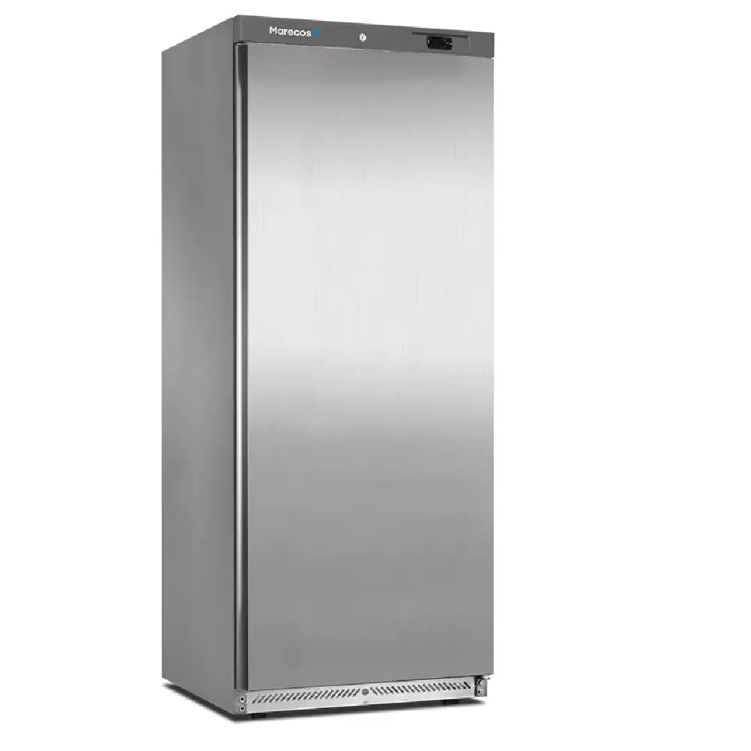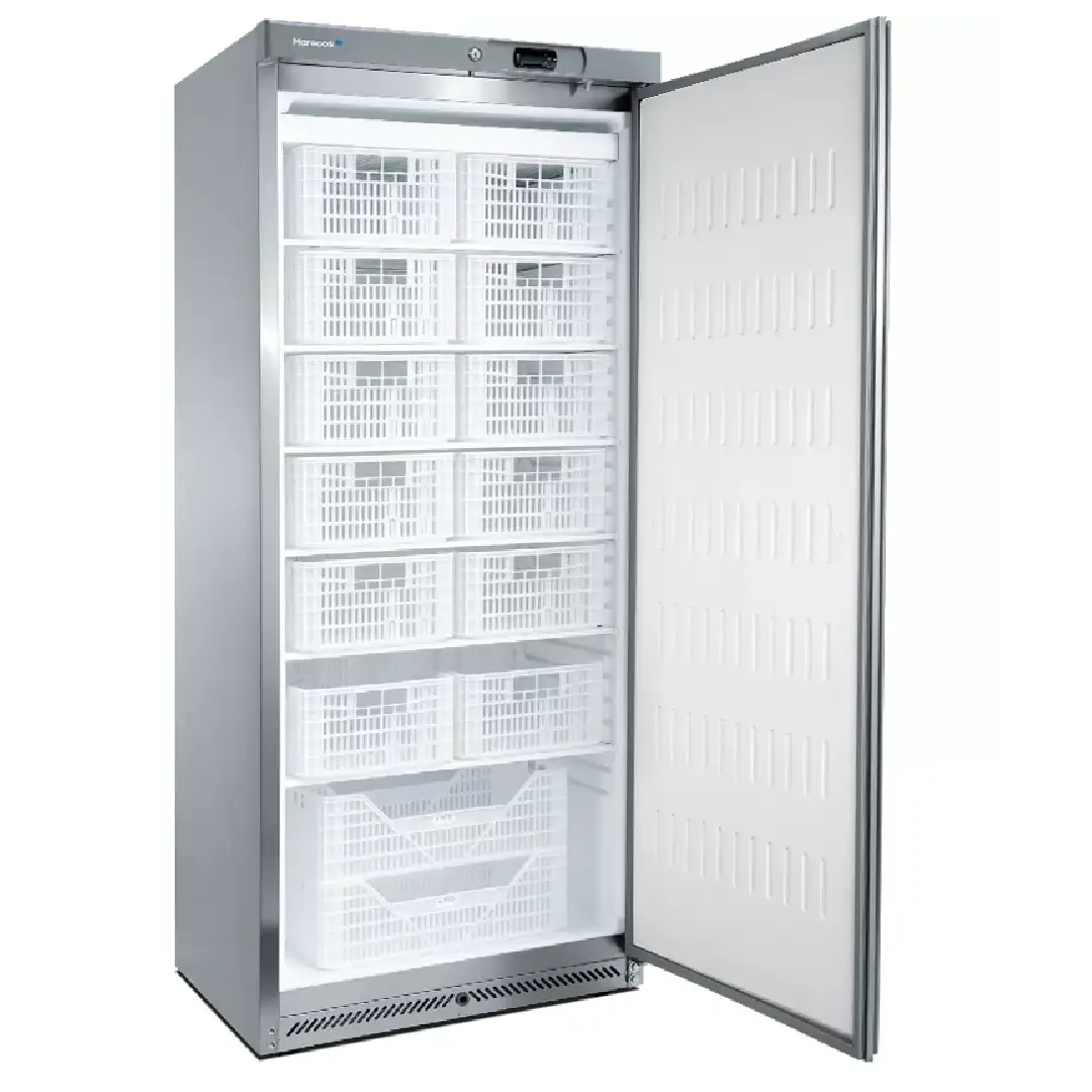Dotado de fechadura de serie, exterior em aço inox, interior em plástico termoformado, 6 prateleiras fixas, porta reversível com fecho automático e 4 deslizadores com 2 pés niveladores. Tem a possibilidade de aplicação de 14 cestos no interior como forma de organização e separação dos produtos a conservar.