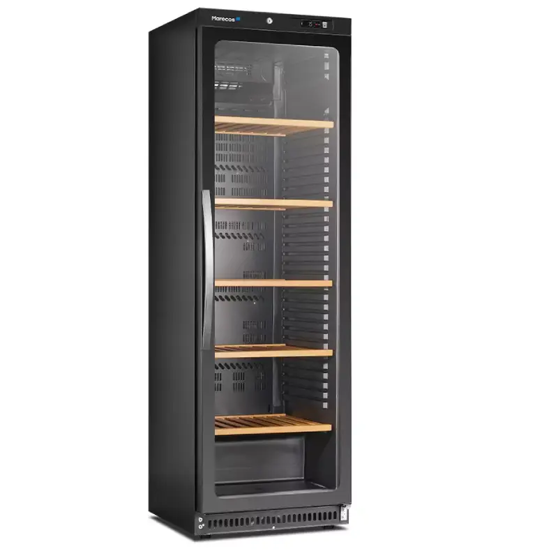 Equipamento ótimo para reserva e exposição de vinhos. Os 50 mm de isolamento com frio ventilado e descongelação automática, controlados por um termostato digital, são garantia de uniformidade de temperatura no interior.