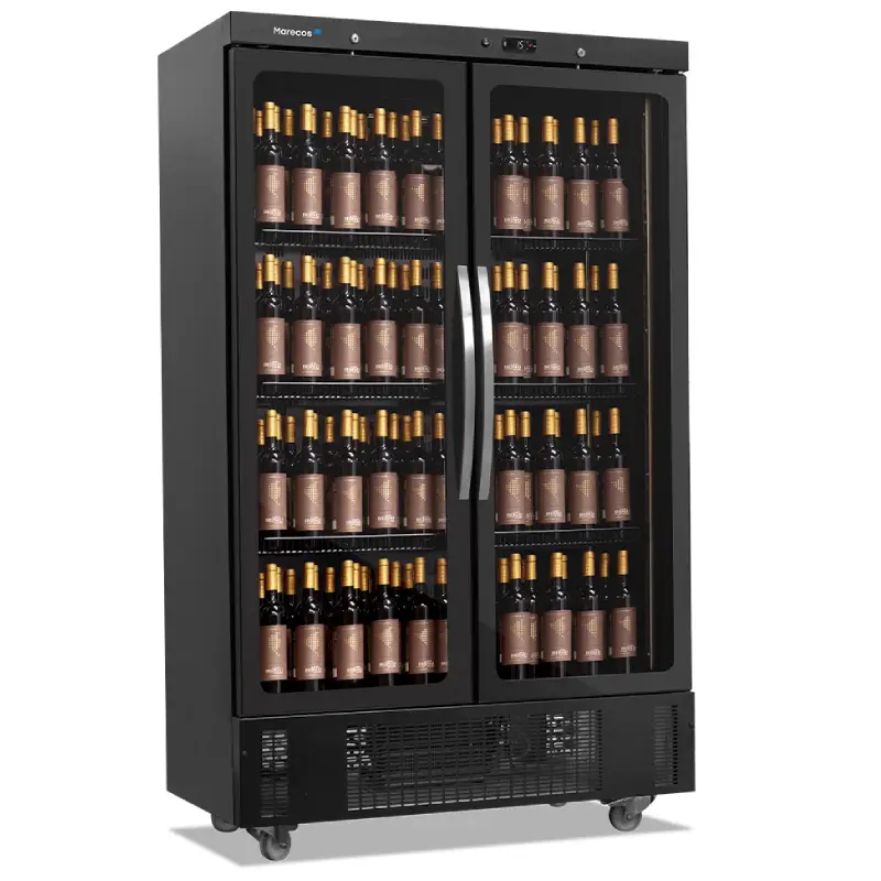 Devido à grande área de exposição, trata-se do equipamento ideal para restaurantes, supermercados ou grandes superfícies com muita rotação de vinhos. Os 50 mm de isolamento com frio ventilado e descongelação automática, controlados por um termostato digital, são garantia de uniformidade de temperatura no interior.